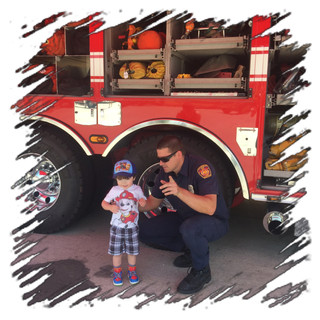 My dad was a police officer when I was growing up. There may have been (many) moments in my teenage years when I didn't respect his rules - curfews sucked; the code to unlock cable channels he'd blocked on our satellite dish was always his birthday; when Alece M. finally (after several years) allowed me to be her boyfriend, I was certainly not gonna come 'straight home from work' EVERY day - but I absolutely always have and always will respect the man that he is at his core. Not because he was a cop...but because he is the type of person whose innate instinct was to become a cop. And my dad was a good one - not one of those police who make you wonder if they are on a power trip, like the d-bag cops I saw in Straight Outta Compton. He is the officer who required himself to be doing things the right way and for the right reason, and he expected the same from the people he came into contact with. He has empathy and exercises judgment. He has a belief in doing the right thing, and taught me to live by that same standard (I often question if my understanding of "what's right" is a little skewed, but I absolutely WANT to be holding myself to the same standard that I hold others to). Every time I come into contact with a fire fighter or police officer, I think of my dad. I don't know all of my dad's stories - I was a kid, and probably didn't need to know the details behind why my mom often mentioned that she would worry at night, until he got home safely. I do know this: His role in protecting others has personalized every single first-responder in my eyes. Each 1st-responder is a very real human being, with very normal and special pieces to their lives...and yet they risk those lives in unforeseen and often unexpected dangerous circumstances. Sometimes, they see respect for that (a free meal, a smile from a kiddo) and they sometimes see the negative repercussions that have been brought on by more-publicized, but hopefully less-common delinquents in their profession. BUT.. they still put on the uniform and drive into chaos as a fulltime job. There is a reason that kids RECOGNIZE REAL heroes! Today, I was reminded that my 2-year-old son already has REAL heroes! It's incredible that someone that young can actually recognize how special a certain group of people are! Radley physically flings himself into the air when he realizes there is a police car near us! He has loved the idea of police cars and officers since he could first comprehend such a thing (at that point it wasn't even in English, it was baby-comprehension that mostly included siren noises and a fascination with lights). These days, he constantly runs around our house pretending to be a fireman! He enlists our help in spraying an imaginary hose and put out imaginary fires.